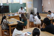 授業では、音楽で校歌を練習したり、社会で地理のなぞなぞをしたりしました。