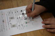 袋に記名したら、部品を失くさないようにプリントに張り付け作業の準備を行いました。