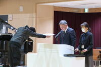 校歌をみんなで歌い、きれいな歌声がホールに響きました。